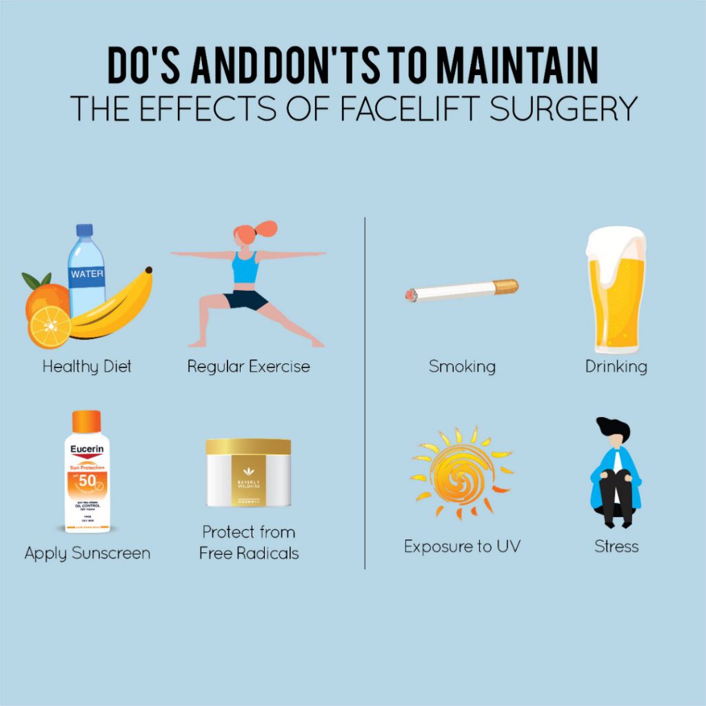 As part of maintenance after the facelift surgery, there are several things you can do: